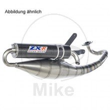Handmade ZX-R Der neueste Stand der Technik für 50er Roller im Bereich Sportauspuffanlagen heißt: Handmade ZX-R und löst die ZX-Anlagen, die meistverkauften Europas, ab. Der Endschalldämpfer wurde komplett überarbeitet und besteht aus echtem Carbon. Durch sein größeres Volumen ermöglicht die Handmade ZX-R eine weitere Reduzierung der Geräuschemissionen. Der Hauptschalldämpfer selbst besteht aus Stahl und die Halterung aus Aluminium. Die Expansionskammer besticht durch ein dezentes Finish, während die polierten Schweißnähte zusätzlich den sportlichen Look unterstreichen. Handmade ZX-R steht somit für ein edles und modernes Design. Die neue, leistungsstarke Schalldämpfer-Serie verfügt zudem über eine EG-ABE.